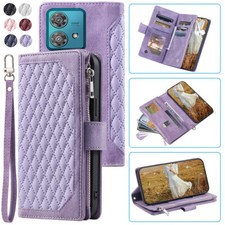Luxury Rhombic Leather Wallet Case Zipper Flip Card Case For Motorola Edge S