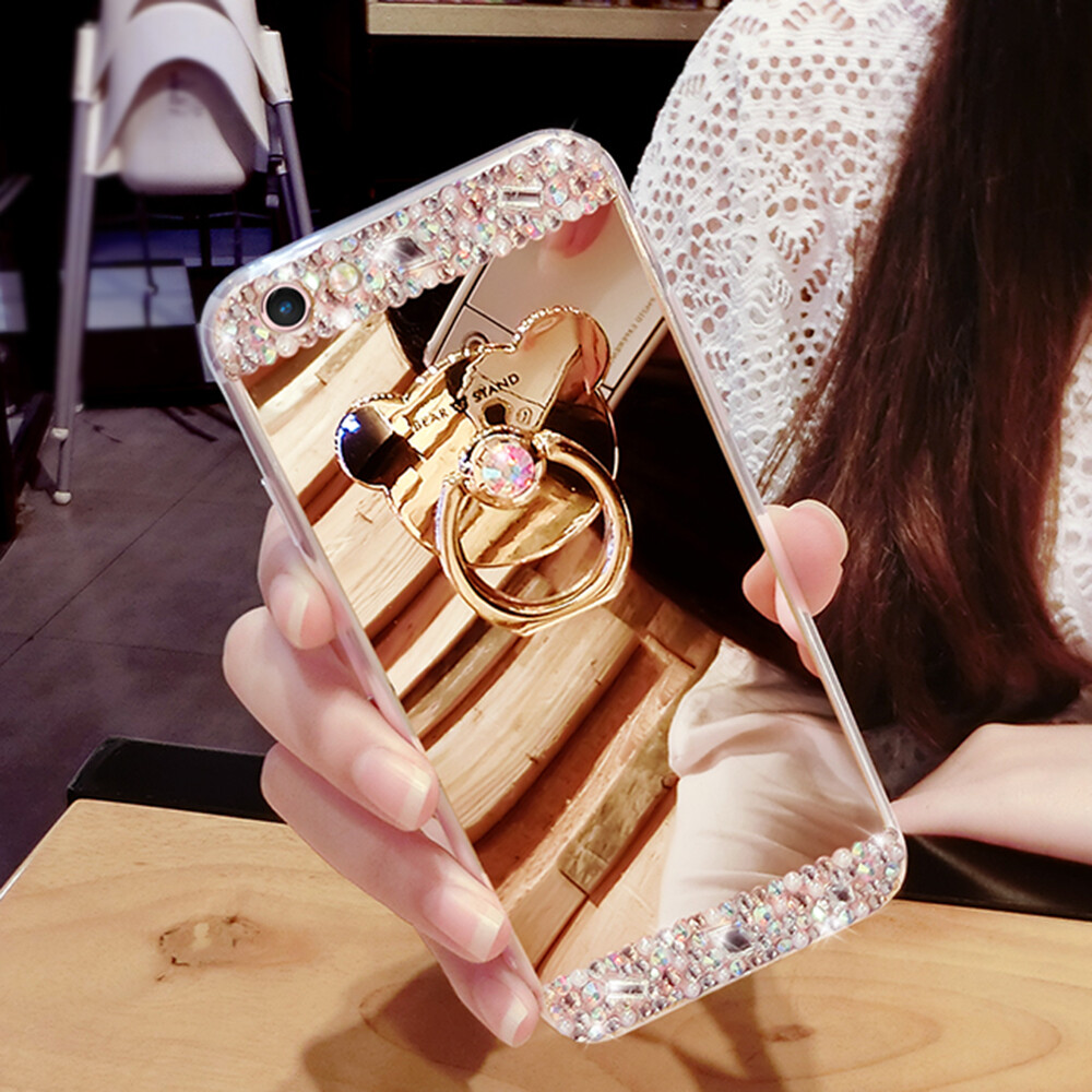 Bling Bling Mirror Diamond Ring Holder Case for iPhone 12 Pro Max 11 XS XR 8 7 6
