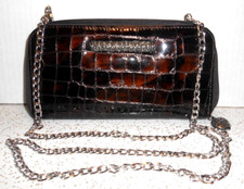 BRIGHTON Brown Croc Patent Leather Clutch Organizer Wallet Zip around Crossbody