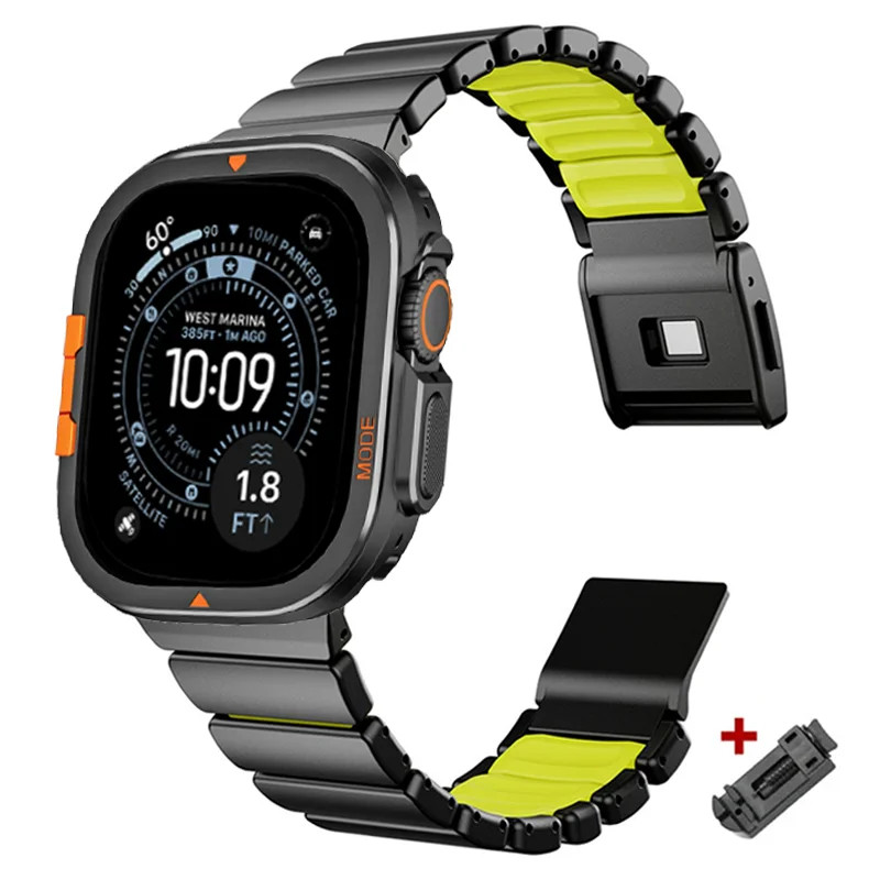 Magnetic Titanium Rubber Band+Metal Case For Apple Watch 11 10 9 8 7 SE Ultra 3
