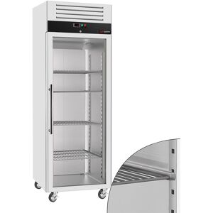 GGM Gastro RVS koelkast ECO - GN 2/1 - 700 liter - met 1 Uitvoering ECO uitvoering Nuttig volume: 440 l Hoogwaardige 60 mm isolatie Koelunit boven achter het frontpaneel Geïntegreerd deurslot voor optimale beveiliging van goederen Digitale thermostaat Zachte opening en sluiting van de deur Sterke en constant blijvende koeling Hoge prestaties bij laag stroomverbruik (milieuvriendelijk) Kwaliteit Behuizing van hoogwaardig roestvrij staal AISI 304 Massieve roestvrijstalen deuren Verwisselbare deurscharnier Roestvrijstalen interieur AISI 304 Koeling Convectiekoeling - betere temperatuurverdeling in het apparaat Extreem krachtige koelmotor Automatische ontdooifunctie Temperatuurbereik: -2 °C tot 8 °C Koelmiddel: R290, CFK - vrij Koelvakken 1 koelvak met 1 deur(en) 3 Draagroosters (in hoogte verstelbaar) Aansluiting Vermogen: 305 Watt Elektrische aansluiting: 230V / 1N/PE / 50 Hz Het apparaat wordt geleverd met een type G-stekker (UK-stekker) Afmetingen Buitenafmetingen B x D x H: 740 mm x 830 mm x 2.010 mm Binnenafmeting B x D x H: 624 mm x 702 mm x 1.394 mm Leveringsomvang 3 opslagroosters 3 Paar roestvrijstalen rails 4 wielen Richtlijnen Materiaal voldoet aan de Europese voedingsmiddelennormen Uiteraard geproduceerd in overeenstemming met hygiëne- en veiligheidsrichtlijnen Artikel draagt CE-markering in overeenstemming met de richtlijn GGM Gastro RVS koelkast ECO - GN 2/1 - 700 liter - met 1