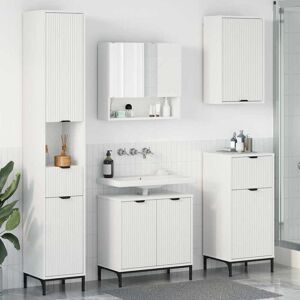 Deze mooie badkamermeubelset van bewerkt hout geeft elke badkamer een moderne en functionele look. Perfect voor wie houdt van een strakke stijl en praktische opslag, deze set is een fijne mix van eenvoudige schoonheid en aanpasbaarheid voor verschillende ruimtes. Met zijn minimalistische vorm en