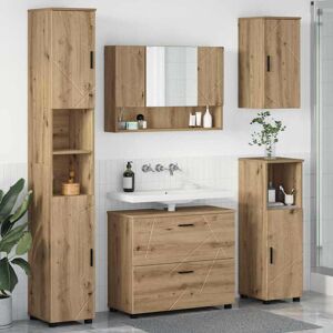 Deze badkamermeubelset van geïndustrieerd hout geeft elke badkamer een slimme, moderne uitstraling. Het is ontworpen voor verschillende mensen en combineert stijl met functionaliteit. Gladde Texture: Het geïndustrieerde hout zorgt voor een soepel, gelijkmatig oppervlak dat duurzaam is en een vleugje