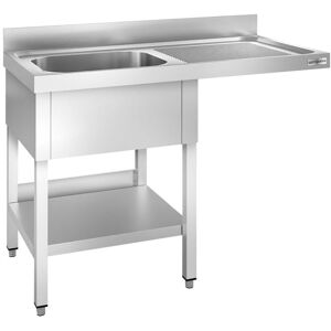 GGM Gastro Spoeltafel voor vaatwasser - 1400x600mm - met 1 Uitvoering PREMIUM uitvoering Afvoerplaat overhang voor vaatwasser: 600 mm Met achterwand Zeer hoog draagvermogen In hoogte verstelbare voeten Roestvrijstalen poot(en) (vierkant) Geluiddichte bodemplaten Kwaliteit Roestvrij staal dikte: 0,9 mm Hoogwaardig roestvrij staal AISI 304 Werkoppervlak/afvoervlak gemaakt van reliëf Roestvrij staal Geluidsisolerende schuimmat onder de wasbak Werkoppervlak 1 Bassin Links Werkoppervlak/afvoeroppervlak Rechts 60 mm werkblad Armaturen individueel te monteren Onderstel Met basis Afmetingen Buitenafmetingen B x D x H: 1.400 mm x 600 mm x 970 mm Leveringsomvang Overloop in levering inbegrepen: Richtlijnen Uiteraard geproduceerd in overeenstemming met hygiëne- en veiligheidsrichtlijnen Artikel draagt CE-markering in overeenstemming met de richtlijn Materiaal voldoet aan de Europese voedingsmiddelennormen GGM Gastro Spoeltafel voor vaatwasser - 1400x600mm - met 1